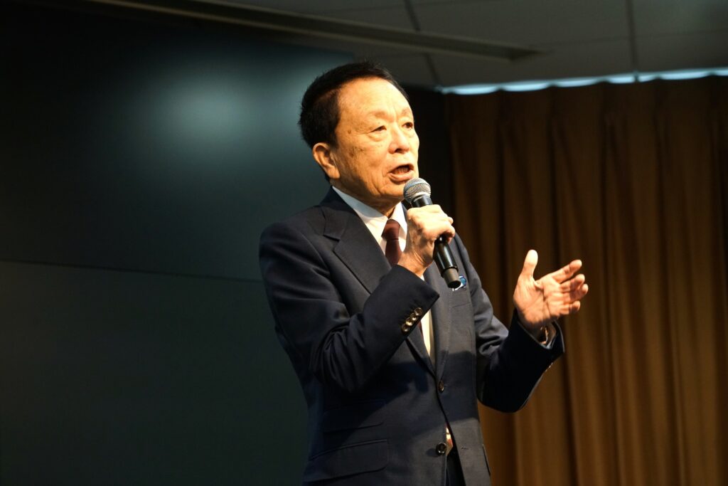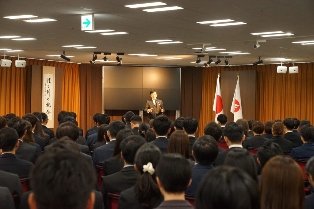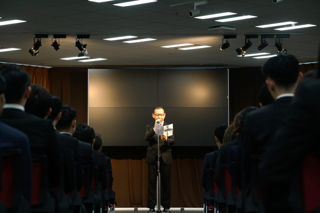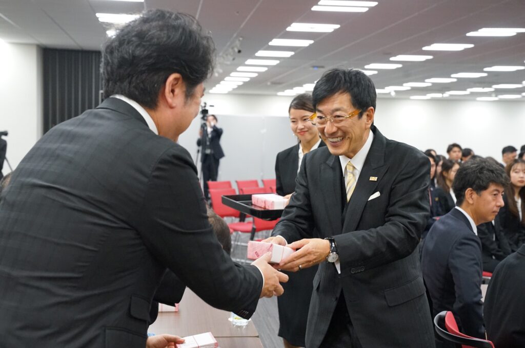 式典では、創業の原点に全員で向き合う社史映像を上映。